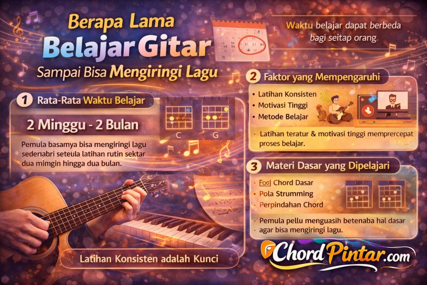 Banyak orang yang ingin belajar gitar sering bertanya berapa lama waktu yang dibutuhkan sampai bisa mengiringi lagu. Pada dasarnya, waktu belajar gitar setiap orang bisa berbeda tergantung konsistensi latihan, metode belajar, serta tingkat kesulitan lagu yang dipelajari. Dengan latihan rutin, sebagian pemula biasanya sudah bisa mengiringi lagu sederhana dalam waktu beberapa minggu hingga beberapa bulan. Artikel ini membahas berapa lama waktu yang dibutuhkan untuk belajar gitar sampai bisa mengiringi lagu serta faktor-faktor yang mempengaruhi proses belajar tersebut.