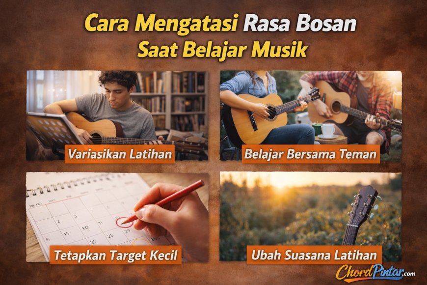 Artikel ini membahas berbagai cara efektif untuk mengatasi rasa bosan saat belajar musik, mulai dari variasi latihan, menetapkan target, hingga menjaga motivasi agar tetap konsisten dan menikmati proses belajar.