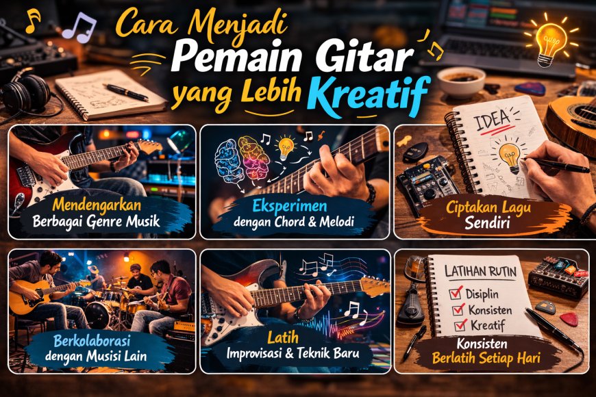 Menjadi pemain gitar yang lebih kreatif membutuhkan latihan, eksplorasi, dan keberanian untuk mencoba hal-hal baru. Dengan mendengarkan berbagai genre musik, menguasai teknik dasar gitar, serta bereksperimen dengan progresi chord dan improvisasi, seorang gitaris dapat mengembangkan gaya bermain yang unik.