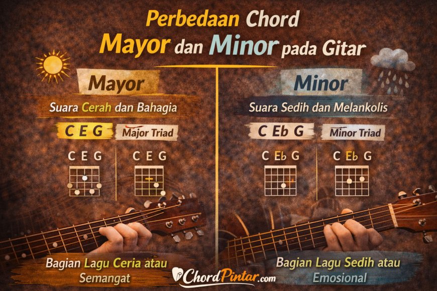 Dalam dunia musik, chord atau akor merupakan salah satu elemen penting yang membentuk harmoni sebuah lagu. Bagi pemain gitar, memahami berbagai jenis chord adalah langkah awal untuk bisa memainkan banyak lagu dengan baik. Dua jenis chord yang paling dasar dan paling sering digunakan dalam musik adalah chord mayor dan chord minor.